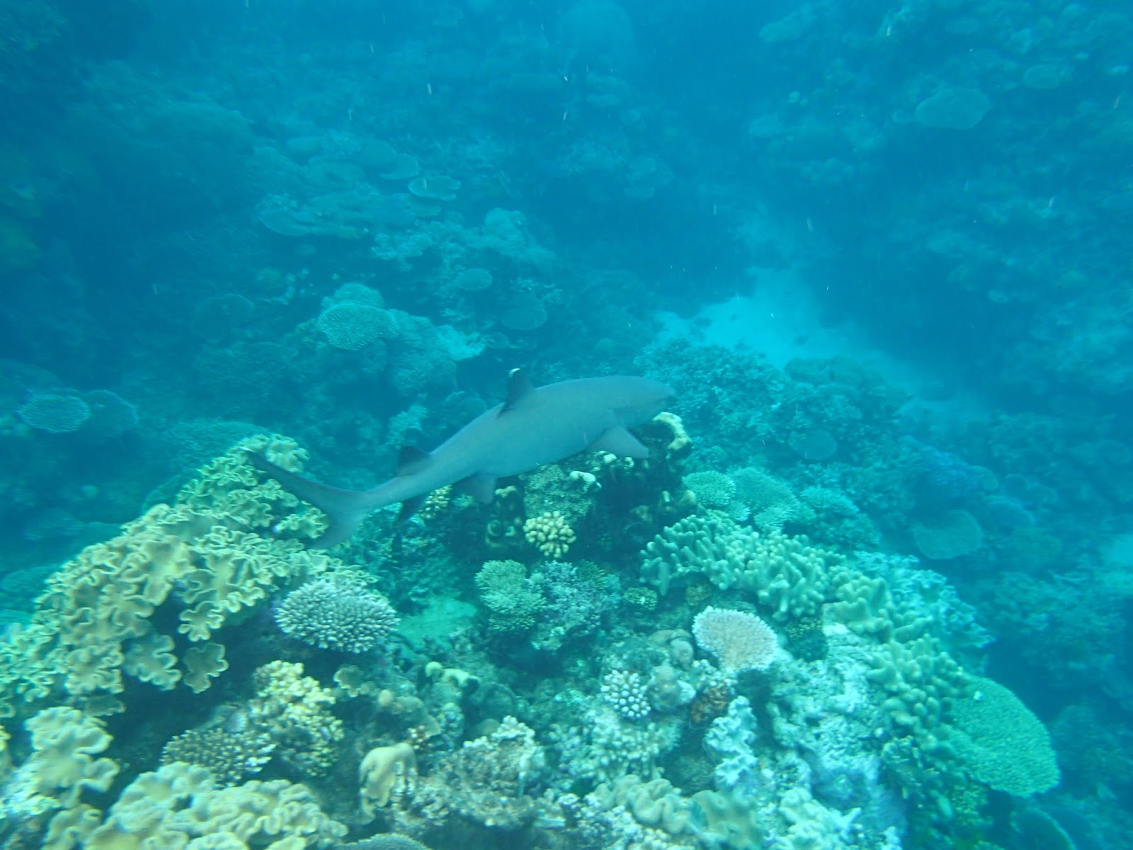 notre première rencontre avec un requin, nous n'en verrons qu'un et resterons sur notre faim et lui aussi heureusement,