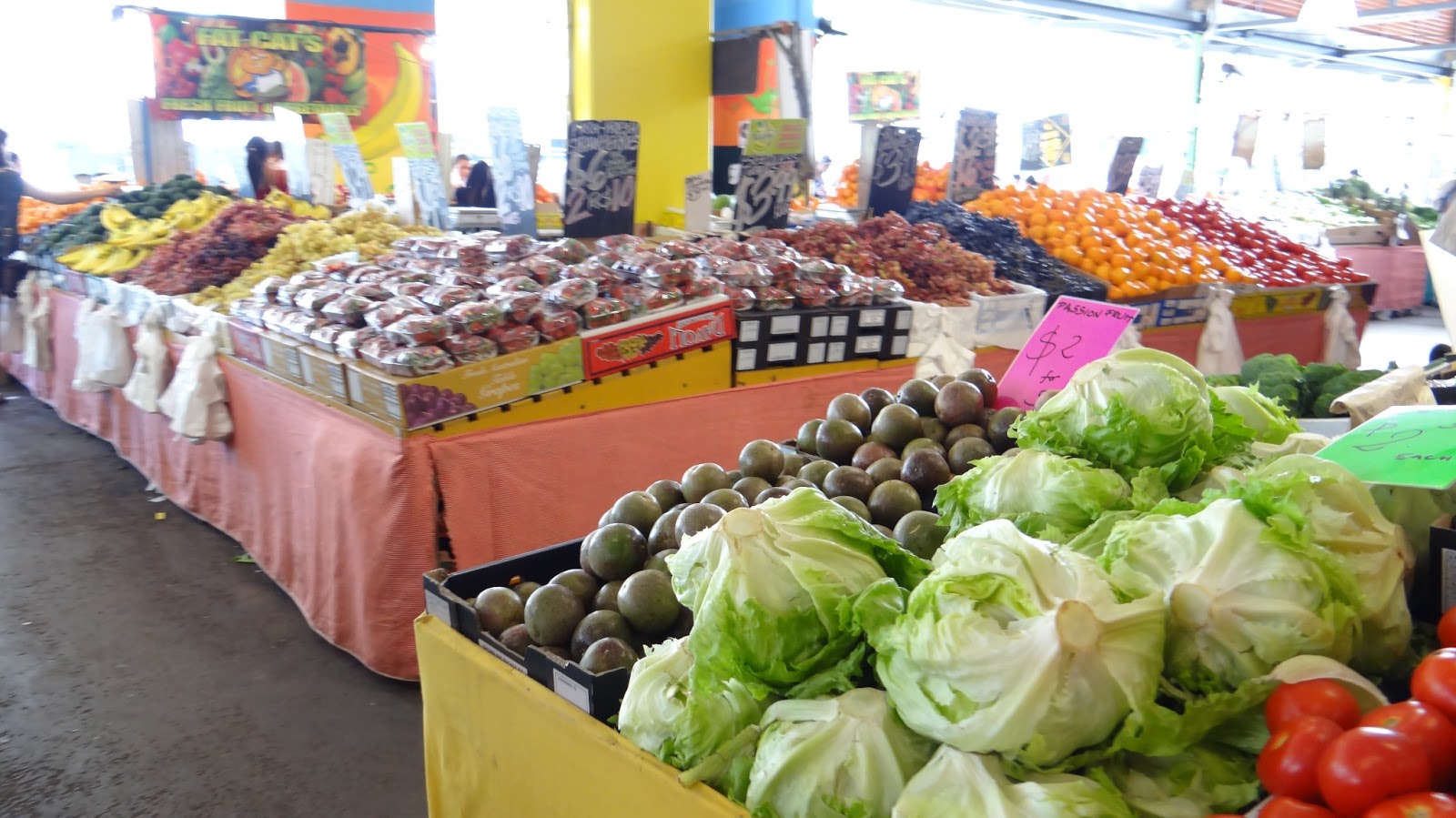 un petit tour au marché, l'occasion pour nous de profiter des dégustations de fruits, (HUMMM)