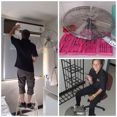 Notre petit boulot est dans un backpacker (auberge de jeunesse). Il consiste à nettoyer des climatisations et des ventilateurs à raison de 4 heures par jours du Lundi au Vendredi, de 10h à 14 h, impeccable comme horaire, n'est ce pas?