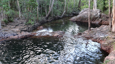 Après avoir effectué bon nombre de km, rendus pénible par la chaleur ambiante , nous arrivons vers 18h à notre lieu de repos et nous profitons de la proximité de Buley Rockhole, pour nous rafraîchir.