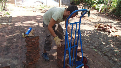 Après l'avoir installé à l'abri des regards avec quelques difficultés, la terre argileuse se gorgeant d'eau a rendu l'exercice un peu périlleux. D'autant plus plus Florian sur qui une chenille de 10 cm de couleur blanche et rouge se baladait à l'arrière de sa cuisse. Dommage mais pas de photo pour cela (un minimum de vie privée voyons !!!!!)