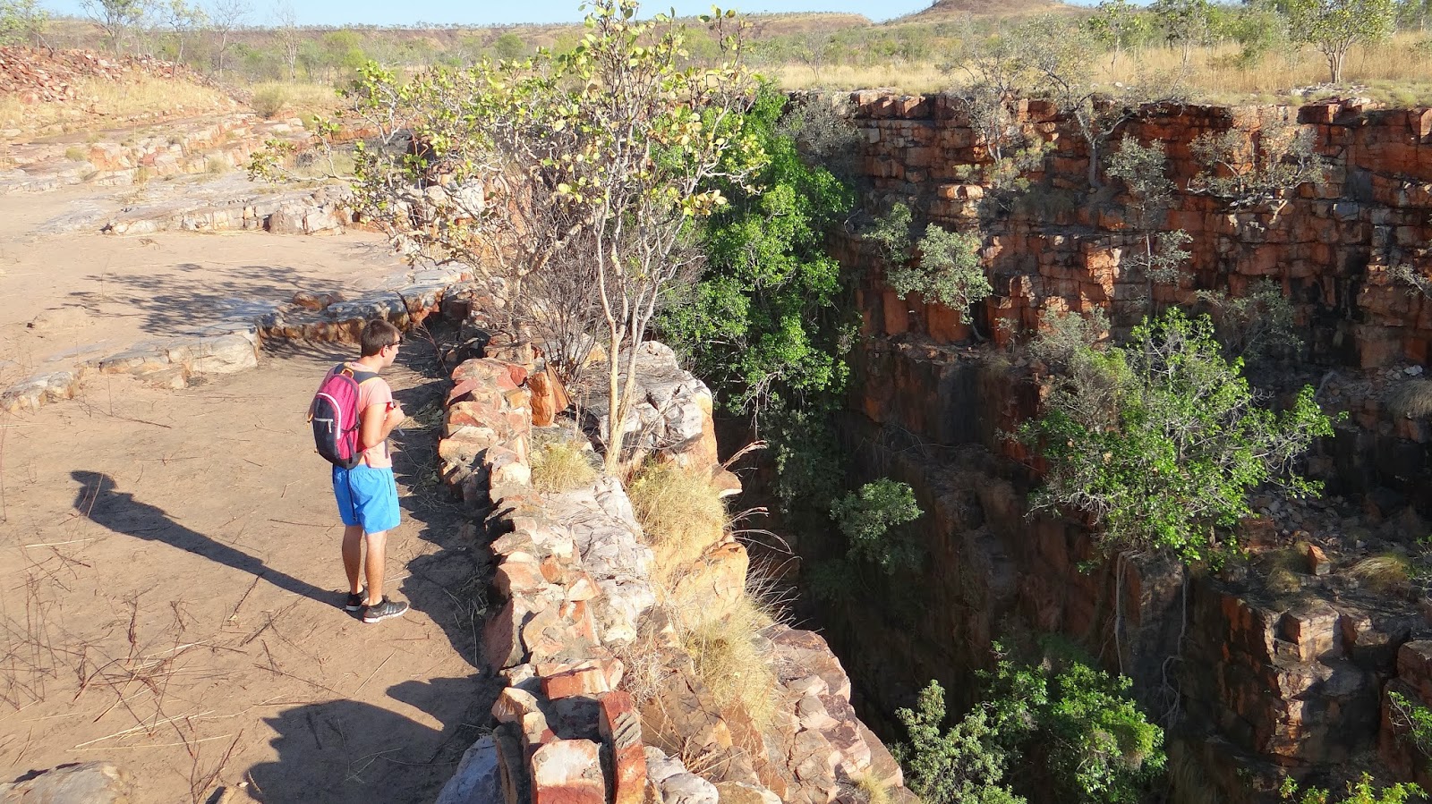Geikie Gorge se trouve sur la route, et nous a permis de prendre un picnic aux abords de la rivière, où la tentation de la baignade est freinée par la présence de crocodiles. Nous y pendrons une douche solaire (douche portable où l'on remplie une poche d'eau).