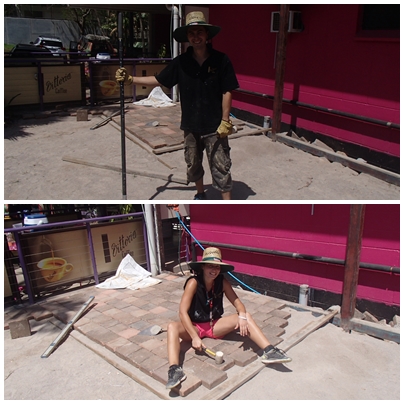 Après l'avoir installé à l'abri des regards avec quelques difficultés, la terre argileuse se gorgeant d'eau a rendu l'exercice un peu périlleux. D'autant plus plus Florian sur qui une chenille de 10 cm de couleur blanche et rouge se baladait à l'arrière de sa cuisse. Dommage mais pas de photo pour cela (un minimum de vie privée voyons !!!!!)