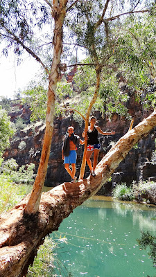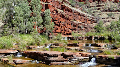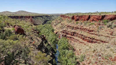Après avoir quittés Broome le 25 septembre (avec un petit pincement au cœur), c’est en date du 27 septembre que nous arrivons au « Karijini National Park », lieu où se trouvent de nombreuses gorges avec des « rock pools » (piscines naturelles). La plupart des gorges ne sont accessibles qu’en 4x4, comme bien des endroits en Oz.