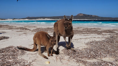 kangourous, mais là avec la plage en plus, le cadre idyllique pour prendre la pause, n'est ce pas?