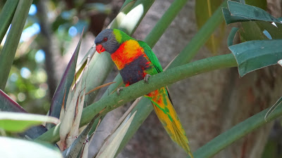 on y croise souvent de nombreux oiseaux, ici des perruches de toutes les couleurs...