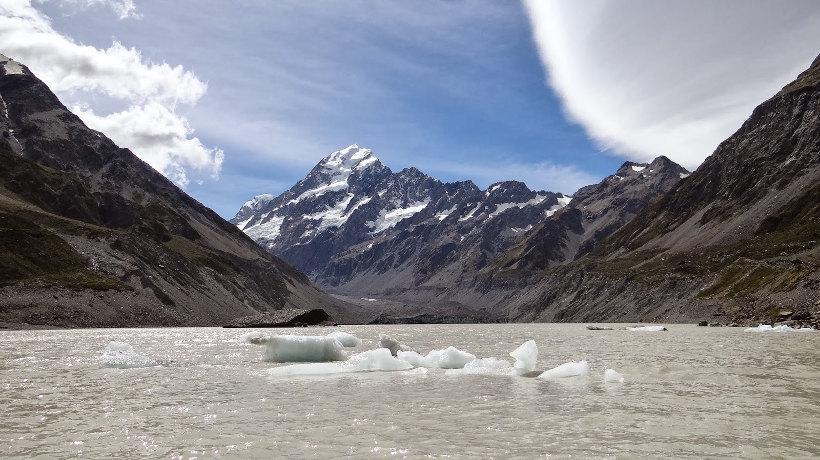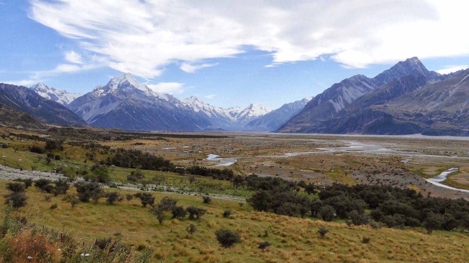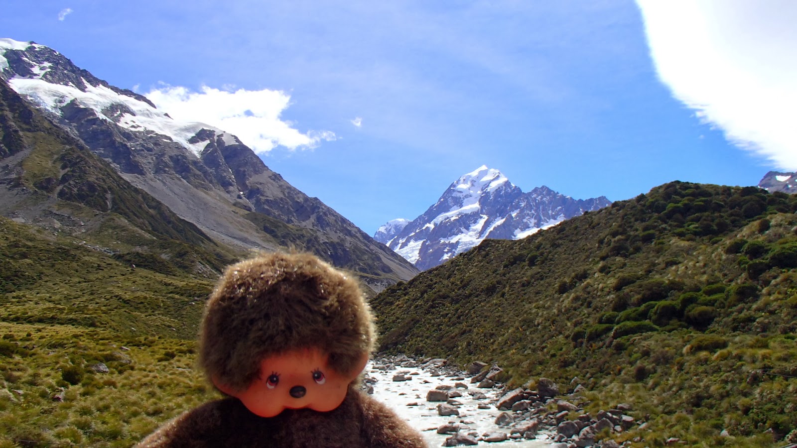 Le "mont Cook "(Aoraki pour les maoris) est la plus haute montagne de Nouvelle Zélande avec une hauteur de 3724 mètres. Nous arriverons là le 28/02/2014 , et à vue d’œil on dirait plutôt 3723 m ...mais passons, les plus chauvins diront :"c'est quand même pas plus grand que le Mont Blanc" et les jaloux ajouteront "pourquoi aller là bas" ;).