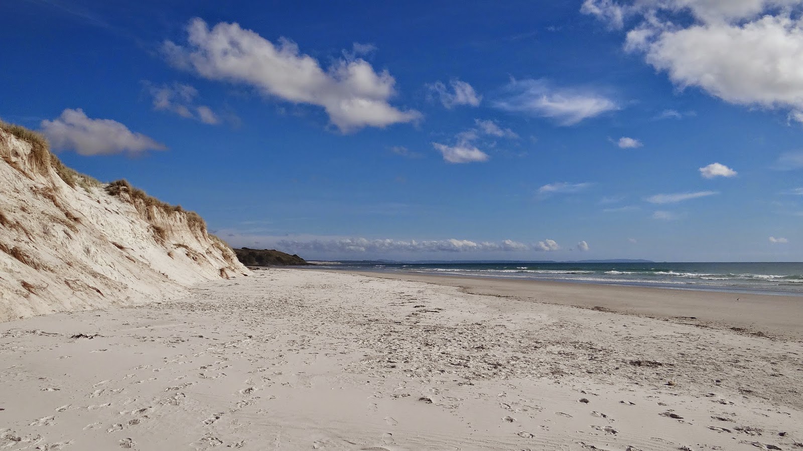 Nous profiterons d'une longue plage de sable blanc sublime surplombée par une colline où les chevaux se baladent paisiblement. Nous prenons conscience du luxe que nous avons de profiter de cette endroit sans personne à la ronde.